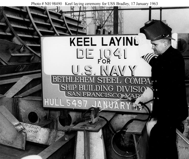 Keel laying ceremony on 17 January 1963 at the Bethlehem Steel