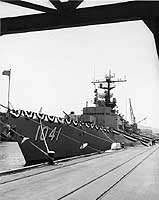 During commissioning ceremony on 15 May 1965, bow view.
