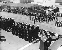 View of helicopter deck and pier during commissioning ceremony