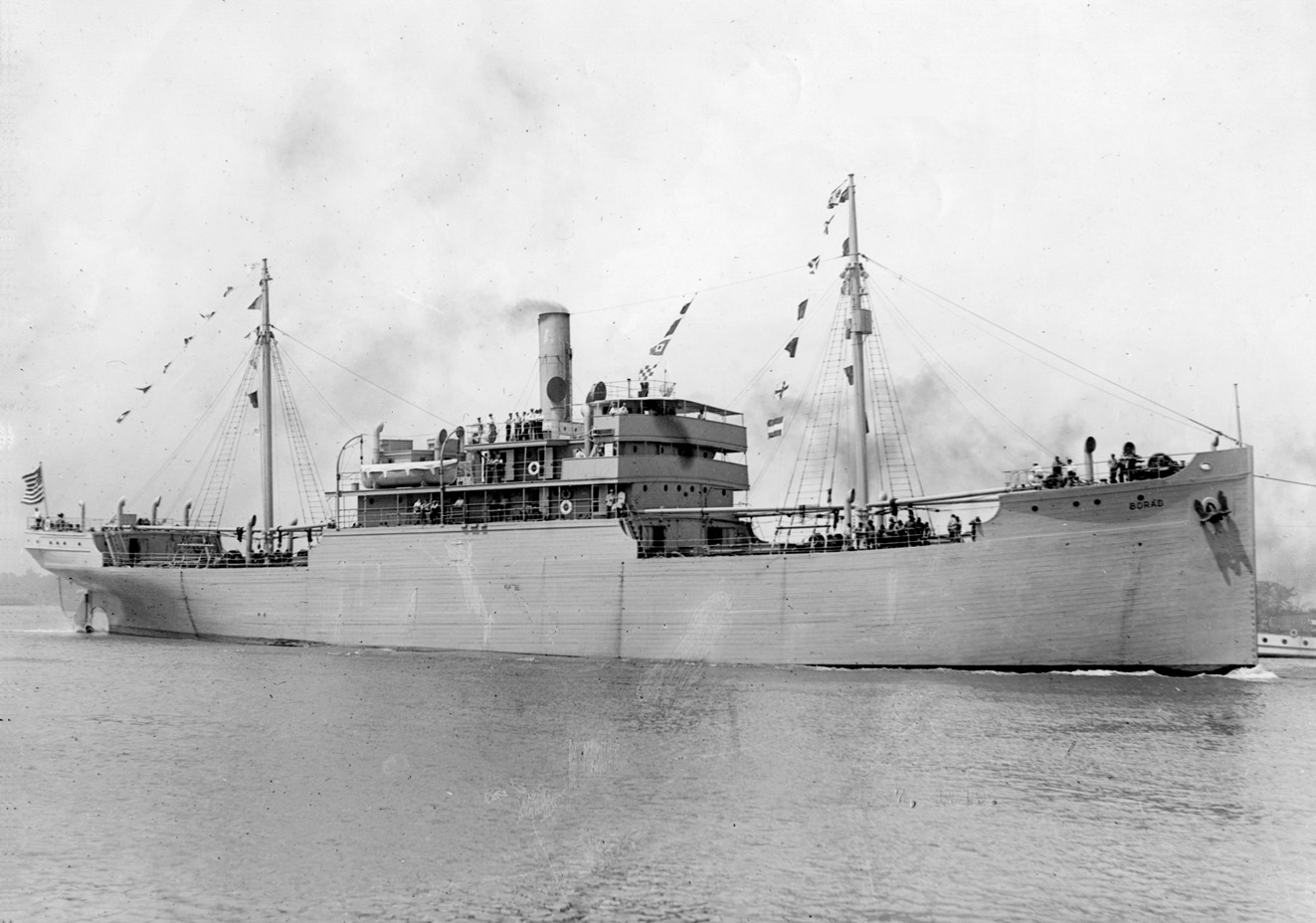 | S.S. Borad (Design 1010, EFC Hull 66) on sea trials on 7 May 1919 after construction by the Terry Shipbuilding Co., Savannah, Ga. She was delivered to the EFC on 6 August 1919. (NARA: RG-32-UB) (Click photo to enlarge) |