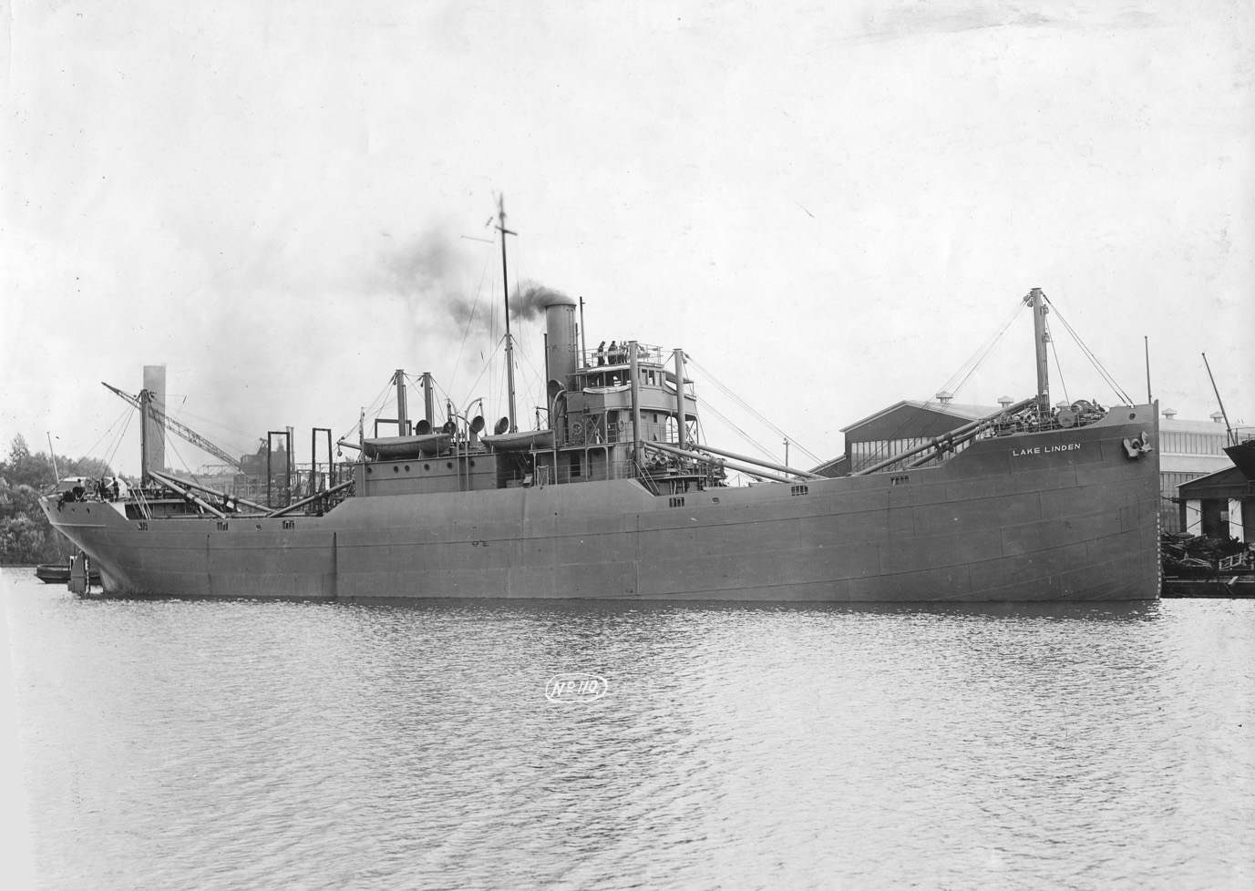 | S.S. Lake Linden (As Design 1044, Yard No. 93),probably shown around the time of her completion, perhaps at her builder's yard. She was delivered to the EFC on 31 August 1918 and to her operator on 11 September 1918. (Historical Collections of the Great Lakes, Bowling Green State University) (Click photo to enlarge) |