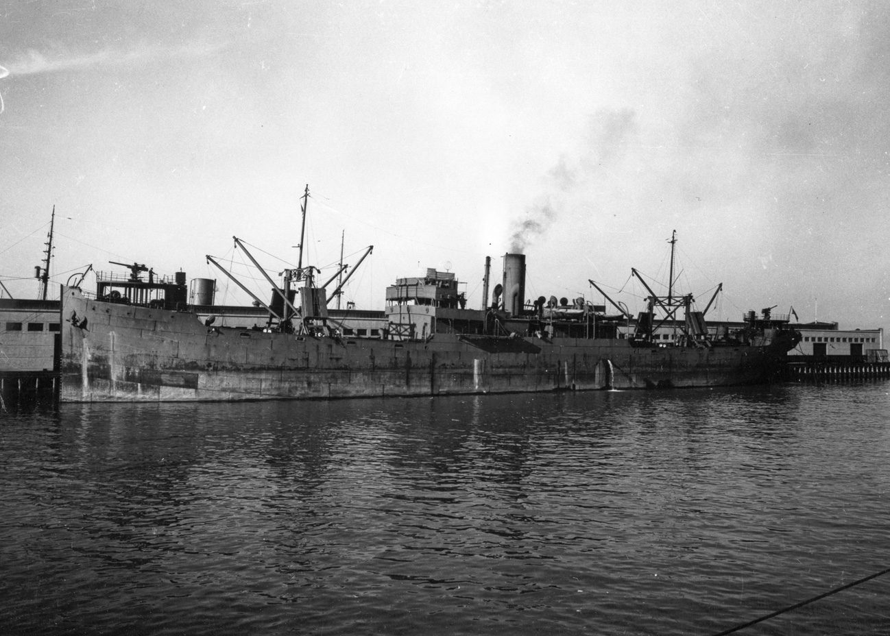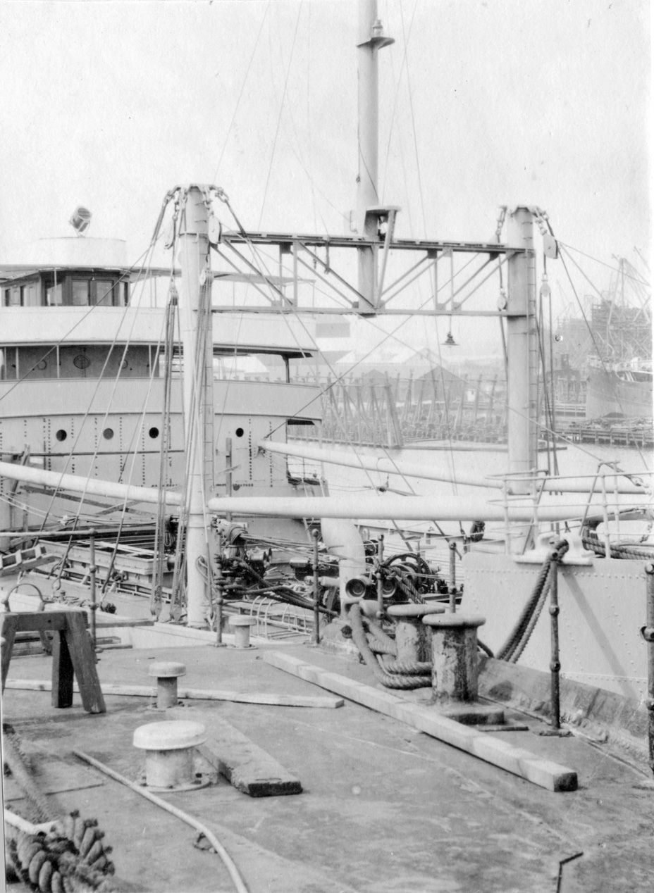 | S.S. East Side (Design 1063, EFC Hull 1289). The third of the ten contract-built Design 1063 ships that followed a series of 13 ships that were requisitioned in August 1917. The contract ships were all completed after the war with a standard peacetime rig of two cargo masts with topmasts. (Shipscribe) (Click photo to enlarge) |