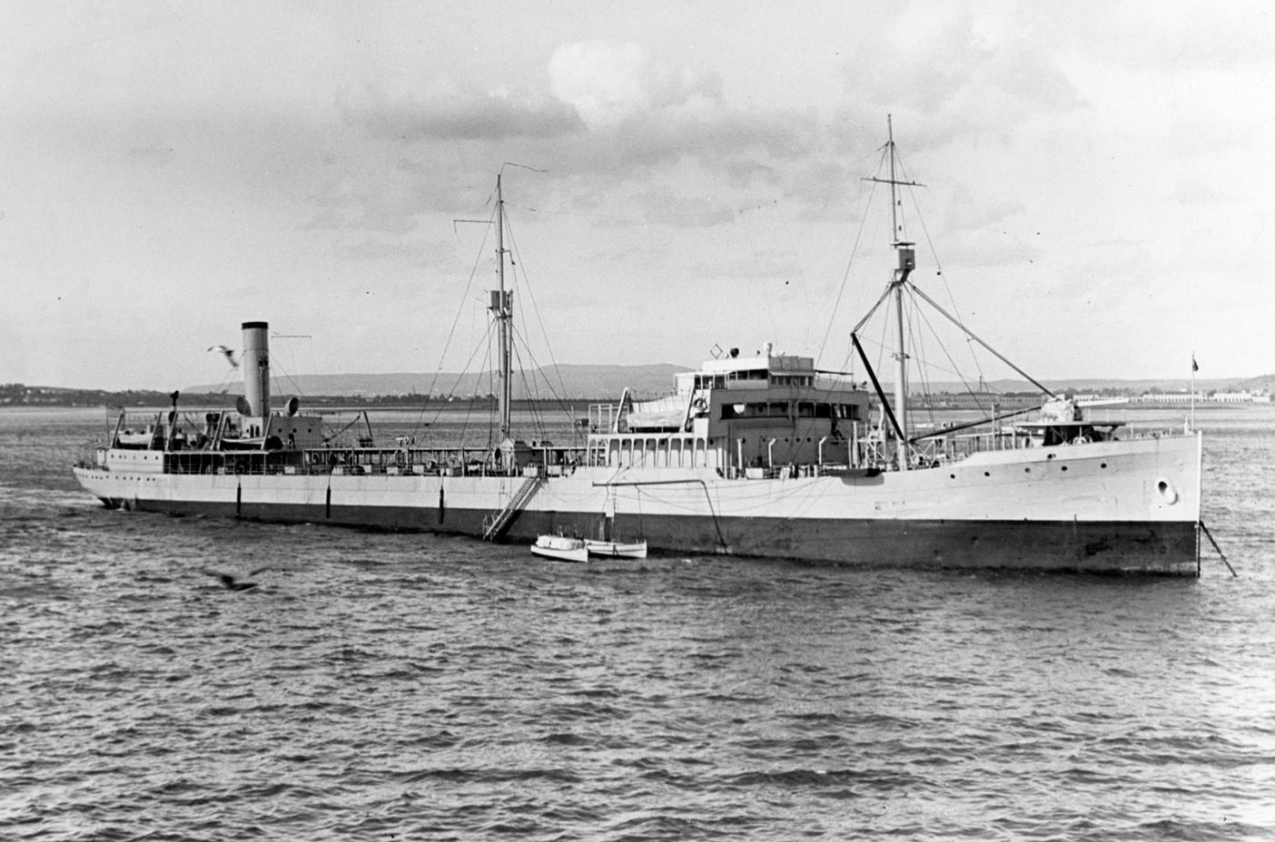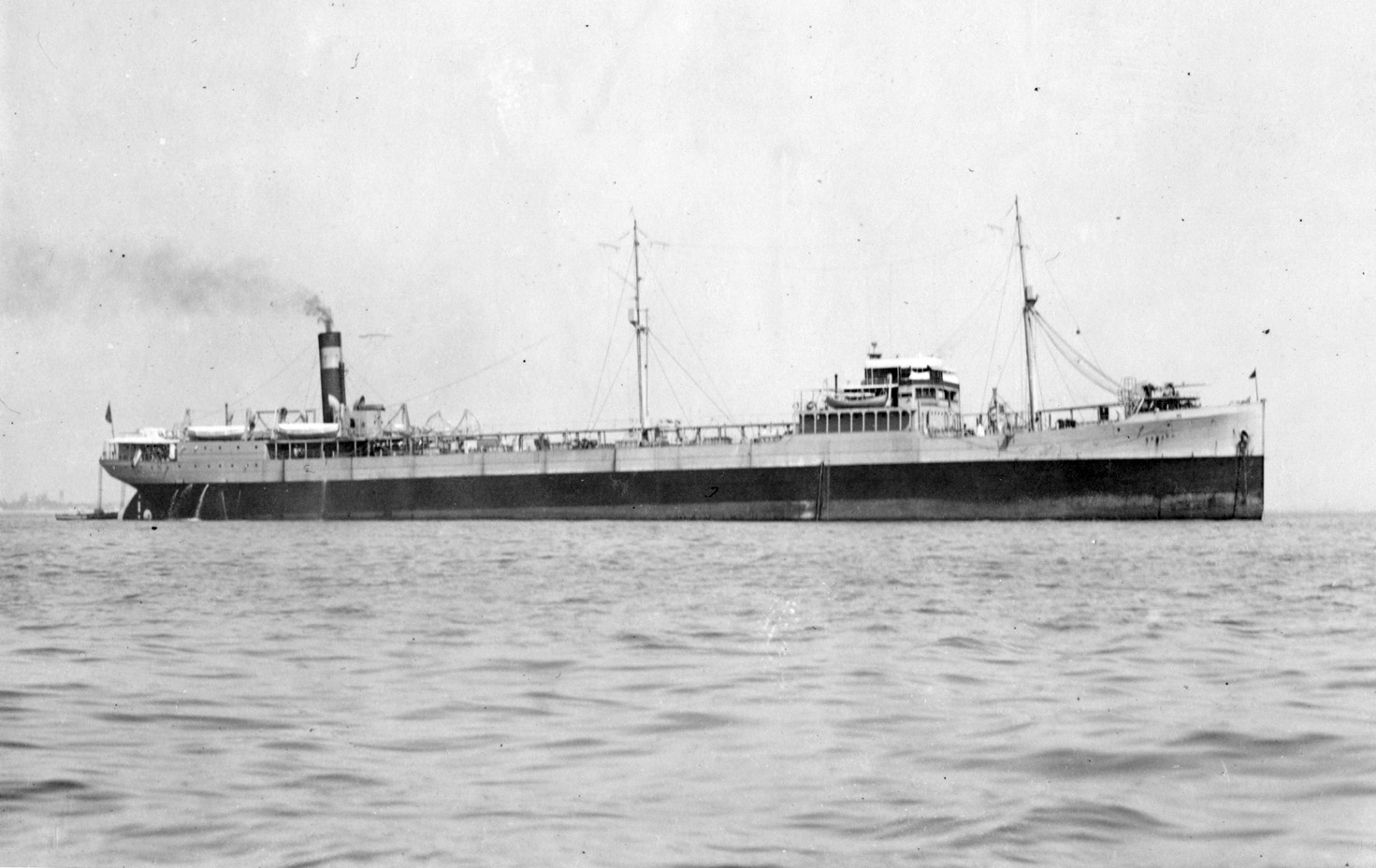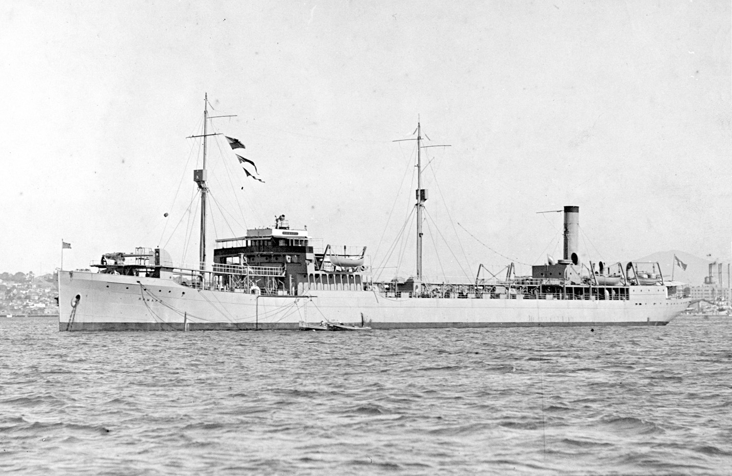 | USS Salinas (AO-19, Design 1106, EFC Hull 1657) shown after receiving one 5"/51 gun on her stern in 1932. Eight of these flush-decked tankers were built by the Newport News S.B. Co., Newport News, Virginia. (NHHC: NH 67794) (Click photo to enlarge) |
