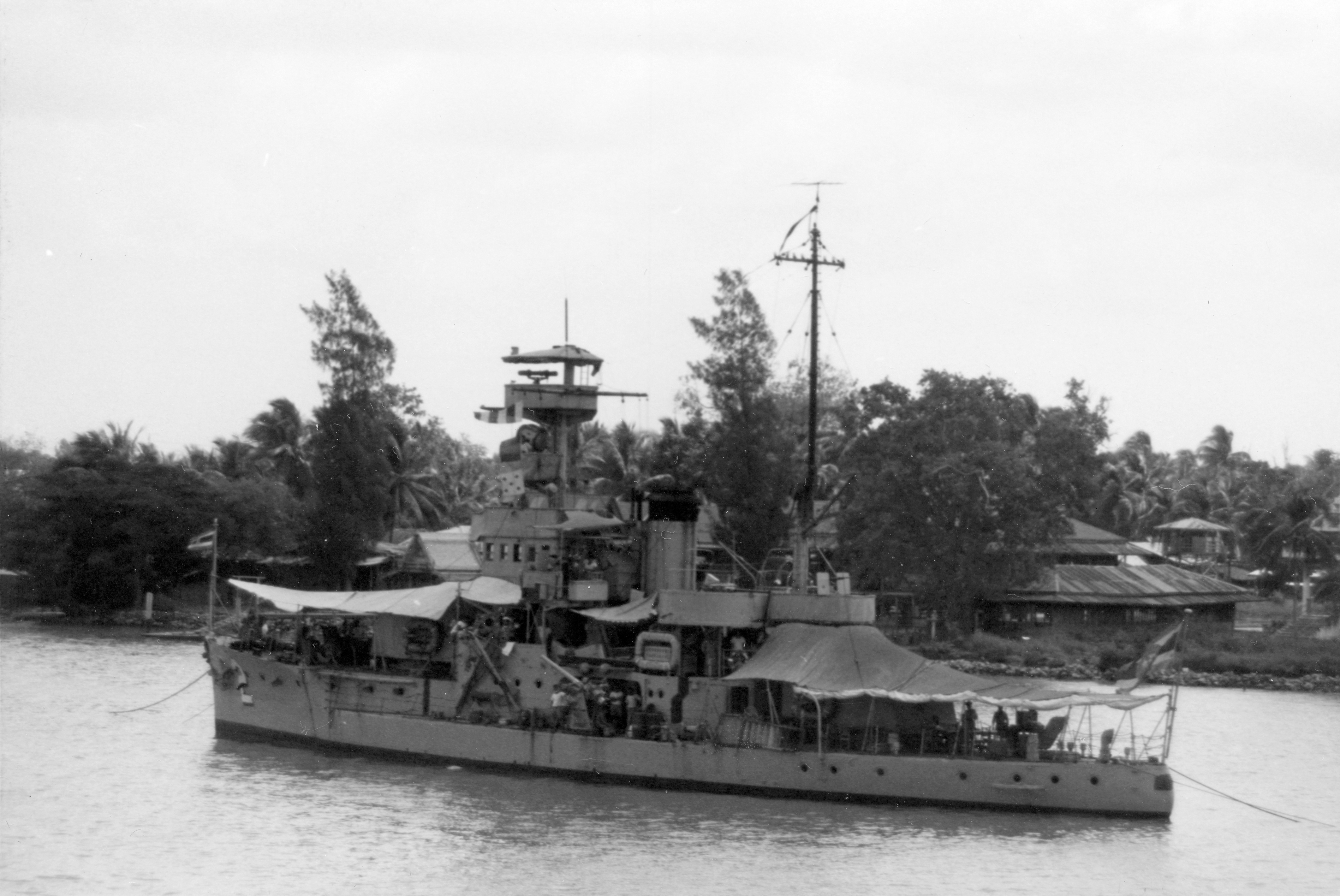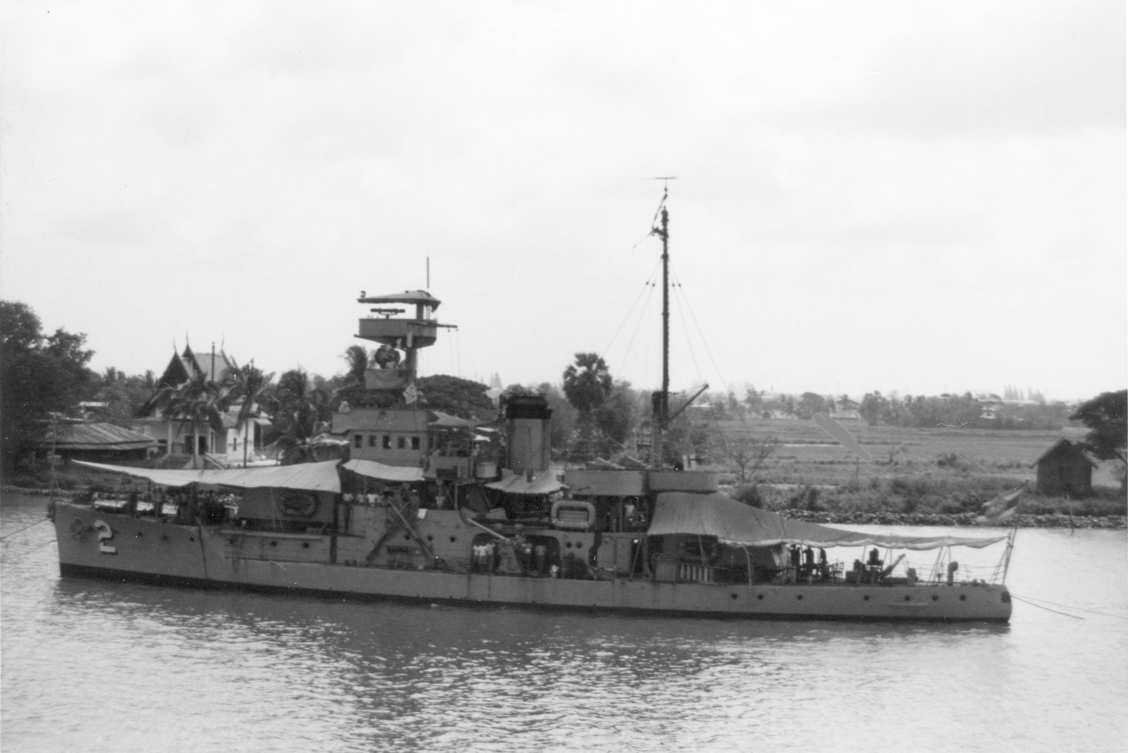 SUKOTHAI (Thai armored gunboat, 1929-1971) Photographed in the Chao Phraya River just below Bangkok on 24 February 1970. Photo No: Replaces NH 92653 Source: Shipscribe |