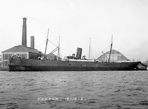 The Navy service of HECTOR, ex PEDRO, was brief. Commissioned on 22 Jun 98, she made a patrol between 10 and 20 July out of Key West in the Gulf of Mexico to Tampa, probably along the west coast of Florida, and then back to Key West. On 24 July she departed for Boston where she arrived a week later and was decommissioned on 17 Sep 98. Struck from the Navy list on 22 Aug 99, HECTOR was advertised for sale on 7 Sep 99 and sold on 10 Oct 99 to the only bidder, the Metropolitan Coal Co. of Boston, Mass., for $65,150. Sold again in 1910, she fell victim to a German submarine in late 1917. Her cargo coal capacity in 1898 was 2,600 tons.
