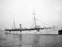 Probably photographed in mid-1898 soon after conversion to an auxiliary cruiser with a main battery of ten 6" guns, of which four were on deck and six in the hull.