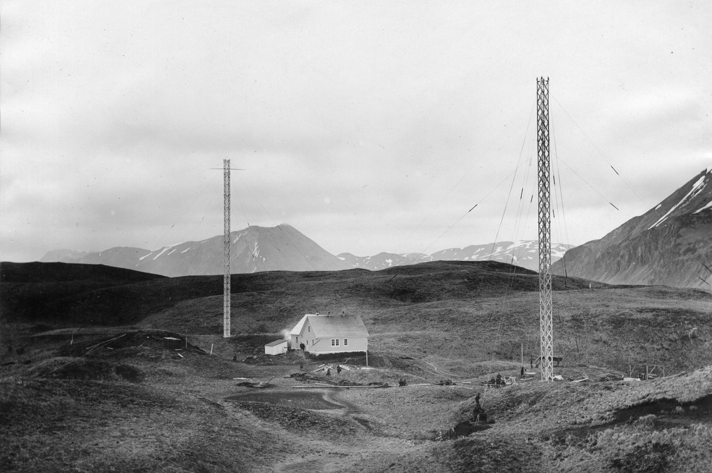 The completed station, photographed by USS Buffalo with the third mast added in 1914.