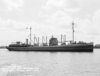 Year 1917 Shipbuilding Program... August 2, 1916 A preliminary design for an ammunition ship sent to the Secretary of the Navy for consideration in meeting the General Boards characteristics of 7 October 1915 for ammunition ships. The design adopted the general form of Henderson (Transport # 1) but modified it by moving machinery aft to facilitate cargo storage, cooling, and handling. This design, with a few modifications, was used as the basis for construction of Pyro (Ammunition Ship # 1) and Nitro (Ammunition Ship # 2). This plan provides four 5-inch guns, turbine machinery for a speed of 16 knots, and an ammunition cargo capacity of 3,200 tons in a ship 460 feet long on the waterline, about 61 feet 1 inches in beam, and with a normal displacement of 10,600 tons. The original plan is in the 1911-1925 "Spring Styles Book" of the Bureau of Construction & Repair. Photo No. S-584-103 Source: U.S. Naval History and Heritage Command (from the Online Library). |