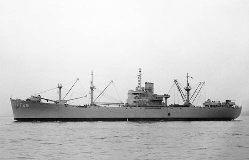 In the meantime, CNO on 12 Jun 43 had directed the acquisition of another AF of suitable characteristics for assignment to the Service Force, Atlantic Fleet. VCNO briefly considered the "banana boat" DARIEN, but the Auxiliary Vessels Board concluded that the Gulf ships would be suitable for this purpose also and recommended the acquisition of a second one, MC hull 485, for Atlantic duty. Both were to be fitted as "Provision Stores Ships (for Fleet Issue)." They were completed as merchant ships and then sent to a conversion yard in Baltimore, being put in commission for the ferry trip and decommissioned on arrival. They may have carried merchant ship armaments (1-5" and 2-3") on their ferry voyages.
