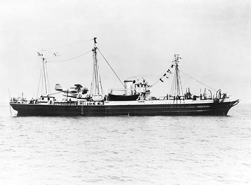 On 11 Sep 39 the Navy chartered BEAR and placed her in commission. On 22 Nov 39 BEAR departed Boston for the Antarctic, a week after her consort, NORTH STAR (later IX-148, q.v.) sailed. BEAR arrived at the Bay of Whales, Antarctica, on 14 Jan 40, two days after NORTH STAR. BEAR returned to Philadelphia on 5 Jun 40 and then conducted another Antarctic expedition between 10 Oct 40 and 18 May 41. On 24 Apr 41 CNO wrote to Rear Admiral Byrd, noting that the Navy had an urgent need for ships capable of operating in northern latitudes and in heavy ice and that BEAR fulfilled these requirements, and asking if it would be possible for the Navy to acquire the ship after her return from Antarctica by gift, purchase, or charter. On 14 Nov 41 the Auxiliary Vessels Board noted that BEAR, then under bare boat charter to the Navy, had been offered to the Navy for sale. In view of the continuing and necessary services performed by this ship and that it was the only vessel available and equipped for such duty, the Board recommended purchasing her. CNO implemented this recommendation on 22 Nov 41 and the ship was purchased from Admiral Byrd on 31 Dec 41. She served on the Northeast Greenland Patrol until returning to Boston on 15 Nov 43. The venerable ship was decommissioned at the Boston Navy Yard on 17 May 44 and was transferred to the MC on 13 Feb 48 when that agency delivered her to her buyer, Frank W. Shaw of Montreal, Quebec.