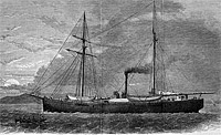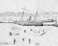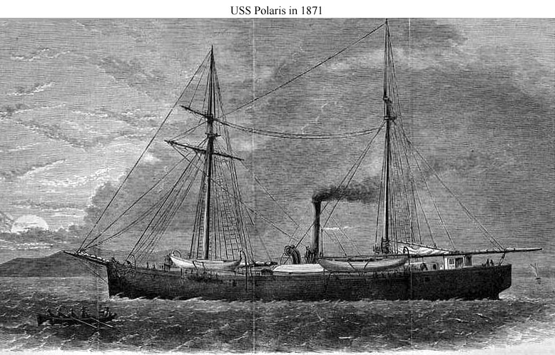 USS Polaris (1864-1872) In open water enroute to the Arctic in 1871. From a wood engraving published in Harper's Weekly, 1873. Photo No. None Source: Wikipedia |