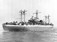 Photographed circa early 1946. This photograph was released on 17 May 1946 with a press story stating that she was to be the floating press headquarters for 169 journalists covering Operation Crossroads, the atomic bomb tests at Bikini.