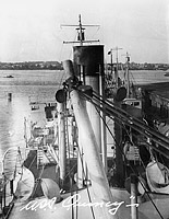 Compared to the March 1921 view above, her navigating bridge including the bridge wings have been partially enclosed and the black paint at the top of the smokestack has been extended down. These and other changes may have been made when the ship was reactivated in May 1921.