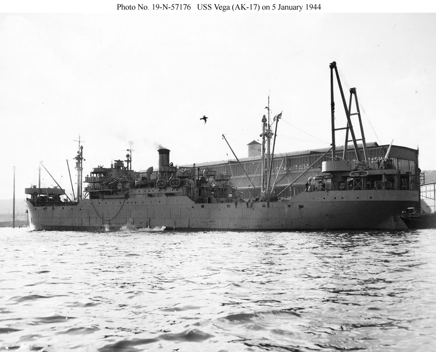 As in Vega, her four 3"/50 guns have been grouped on a raised deck after the bridge and the kingposts that served it have been removed.