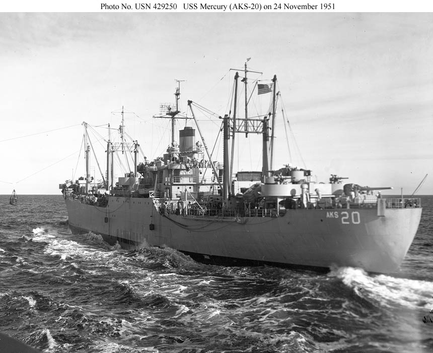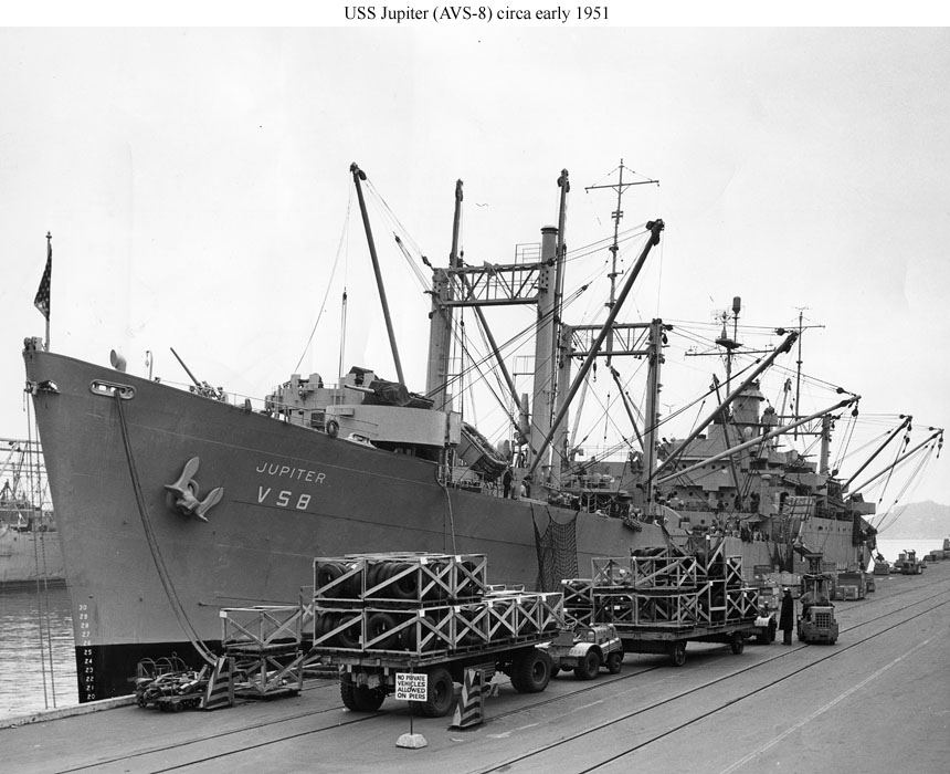 Photographed circa early 1951 loading a cargo of 20,000 aeronautical equipment items for issue to carriers and tenders servicing the Naval Air Force in the Korean War.