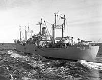 In San Francisco Bay on 16 March 1943 after minor alterations, including the conversion of her forward kingpost pair to a goalpost mast.