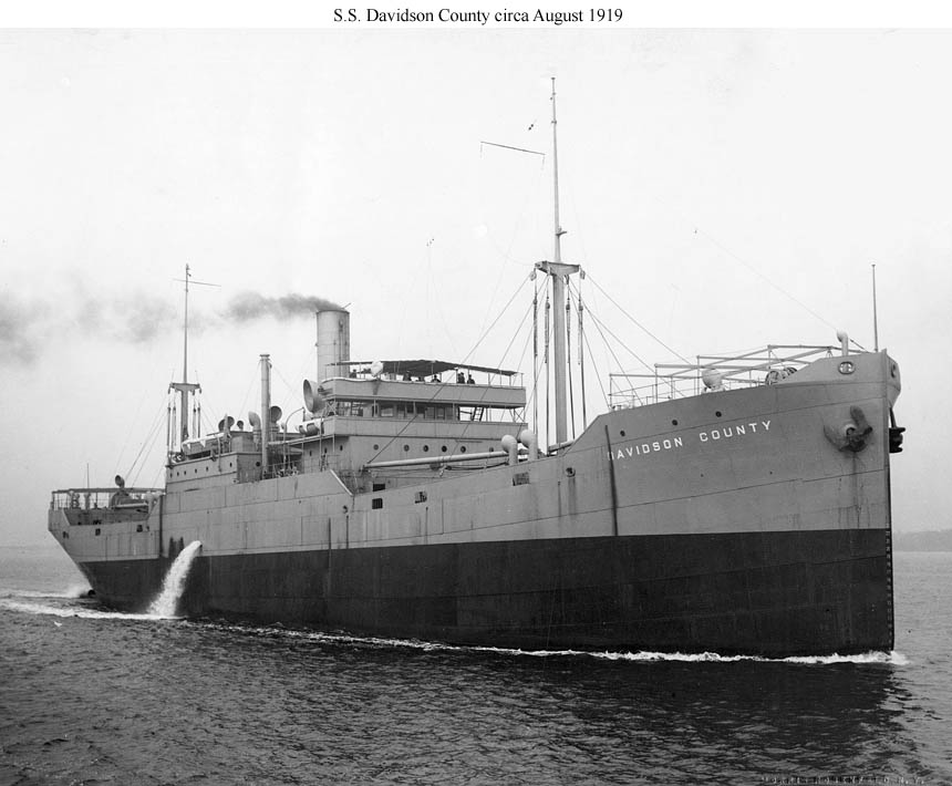 Davidson County was delivered in August 1919 and scrapped in 1925 after only two years of active service.