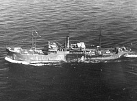 Photographed by a Coast Guard aircraft at 0950 hours on 12 May 1942 23 miles east of Key Largo at the eastern end of the Florida Keys (25-08N, 79-58W) while operating as a "Q-ship" on an anti-submarine decoy mission.