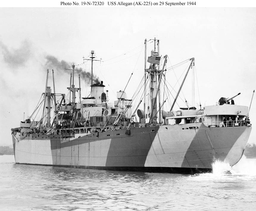 She and the other late addition to this class, Appanoose (AK-226), were acquired to serve as pontoon assembly ships but initially had no distinctive external fittings for this purpose.