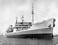 Shown as a civilian-manned MSTS tanker carrying neither cargo nor ballast, probably in the 1950s.