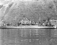 The open bridge above the pilot house has been partially enclosed, as in other auxiliaries during the 1930s.
