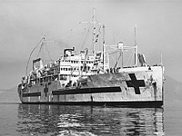 Note the postwar hospital ship markings and the homeward-bound pennant on the mainmast.