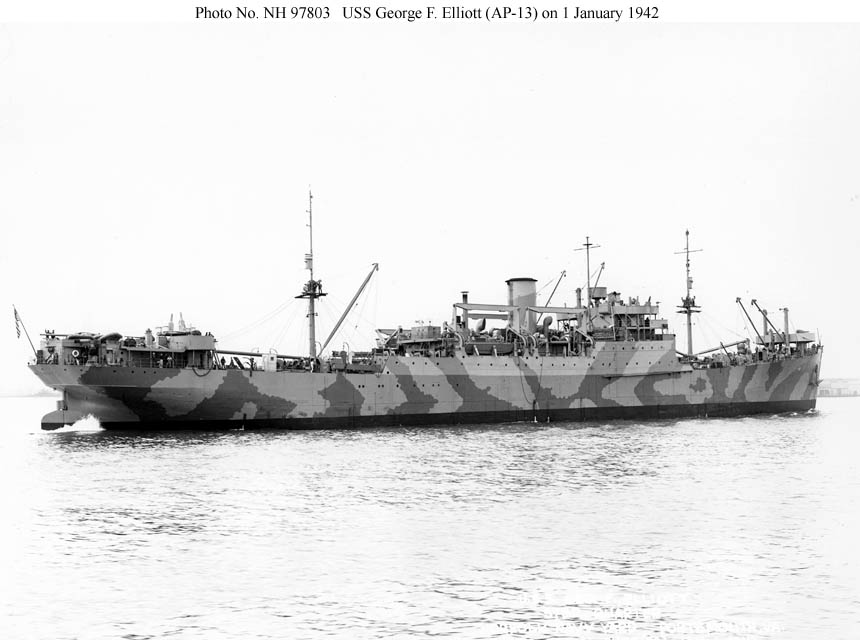 Note the empty gun platform forward. This ship was rebuilt as a passenger-cargo ship in 1931 and in 1940 became USS George F. Elliott (AP-13).