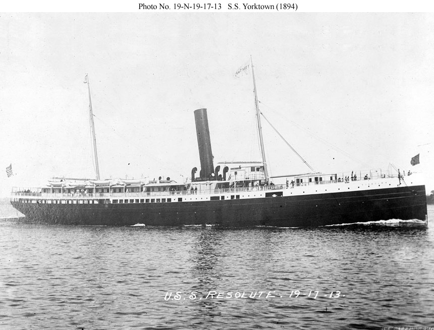 Resolute served at Portsmouth as a marker vessel for the steam trials of the new battleship Kearsarge (BB-5) from May to September 1899 and may also have called there briefly while on transport duty in late 1898.