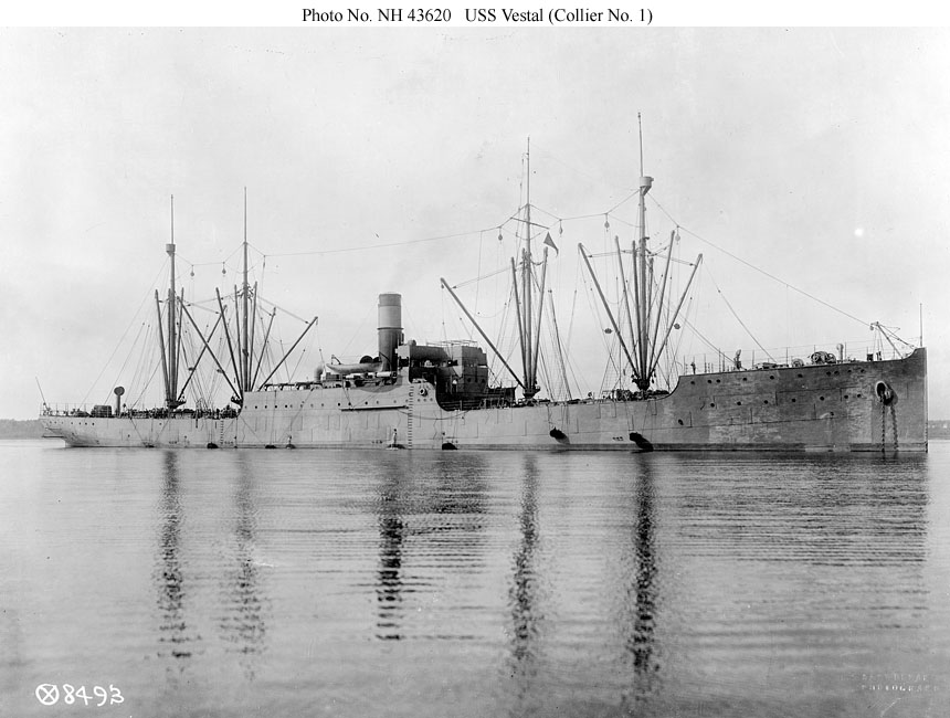 Vestal and her sister Prometheus (Collier No. 2) were the first colliers built by the Navy. They were large and fast ships but were inefficient as colliers because their machinery and superstructure was located amidships. See the listing under Colliers for more photos of these ships as colliers.