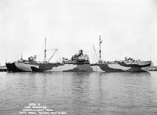 On 11 Jun 43, as part of a major review of auxiliary ship requirements, the board stated that, with the great numbers of ships of all types in the various and extended operating areas, it considered that additional repair ships were essential at the earliest practicable date, and that in planning an auxiliary vessel conversion program for 1944 and 1945 the conversion of LSTs and EC2 ships to repair ships was the most expeditious and economical method of meeting maintenance needs. It noted that these converted ships could relieve to a great extent the installation of shore-based repair facilities in the forward operating areas. As part of this effort, it directed that a program of 12 EC2 ship conversions, six in 1944 and six in 1945, similar to those already being converted, be undertaken. The ships were designated ARG 4-15. When asking the MC for the ships on 28 Jul 43, VCNO explained that the large construction program for diesel engine driven craft had necessitated the acquisition of these additional tenders.