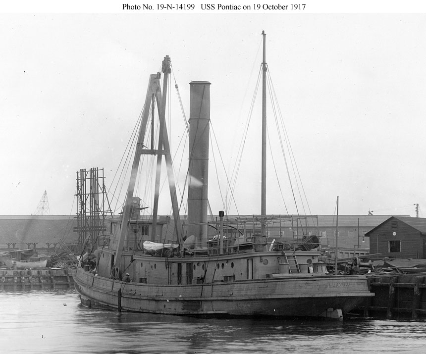 The photo shows the vessel's derrick and boom viewed from aft. Her appearance had changed little since she was acquired in 1898.