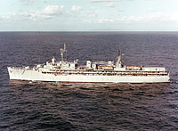 Off the California coast near San Diego on 31 January 1966. The after two 5"/38 gun mounts have been removed and the superstructure extended to the stern. All of her sisters were similarly modified.