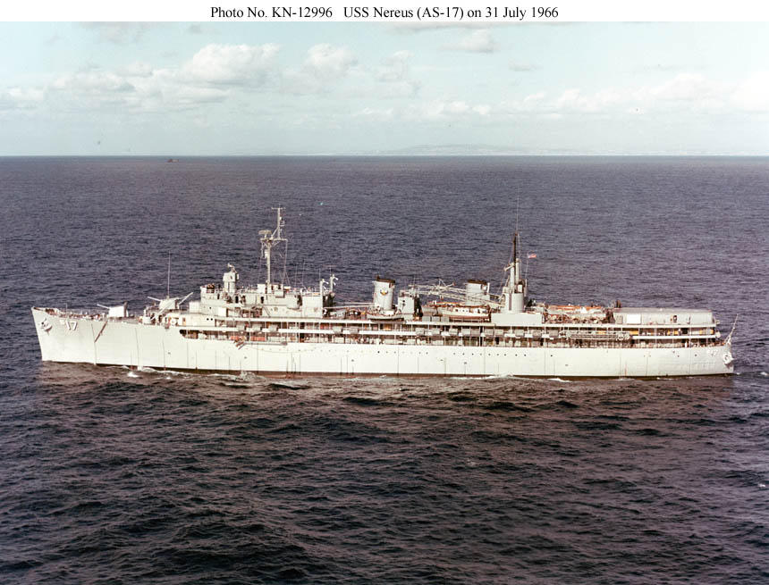 Photographed after the fall of 1972 when her forward 5" guns were removed. All but AS-15 and AS-17 received this modification.