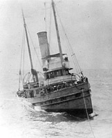 Transferring mail to USS Texas (BB-35) in heavy weather on 16 September 1914.