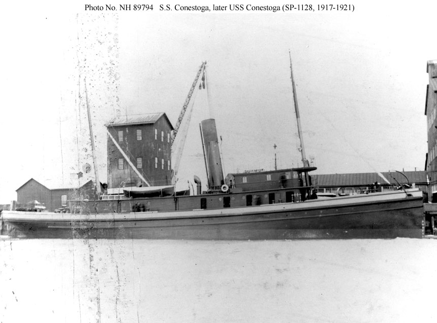 Conestoga was one of a pair of large seagoing tugs built to the same design by the Maryland Steel Co. for the Philadelphia and Reading Transportation Line of Philadelphia in 1904-1905, the other being Monocacy (later USS Genesee). Designed to tow coal barges along the U.S. East Coast, they were among the largest tugs in the U.S. merchant marine. This drawing was published in the August 1904 issue of the journal Marine Engineering.