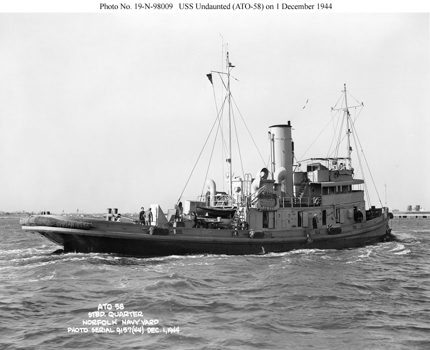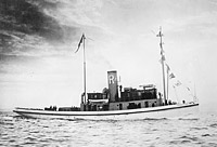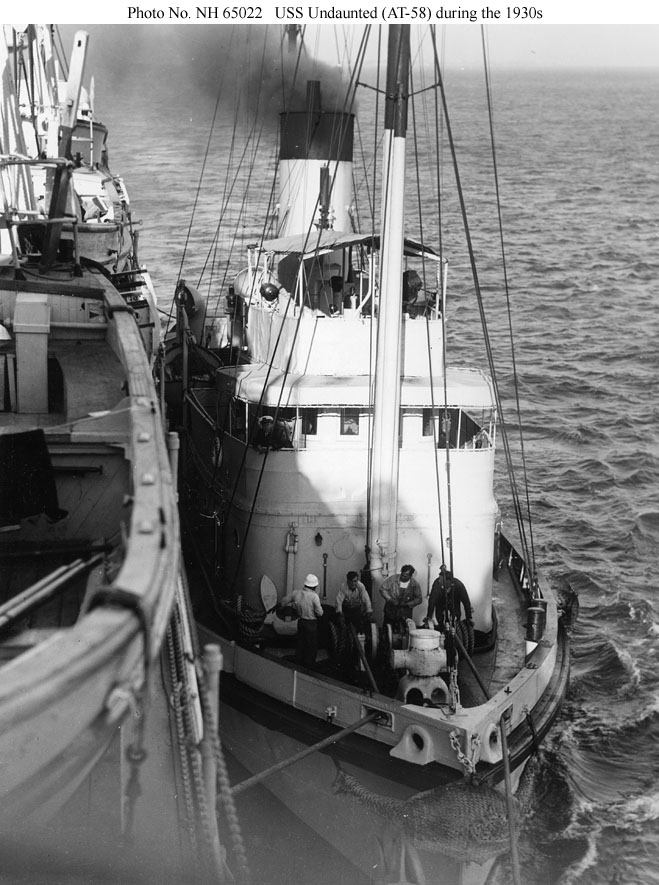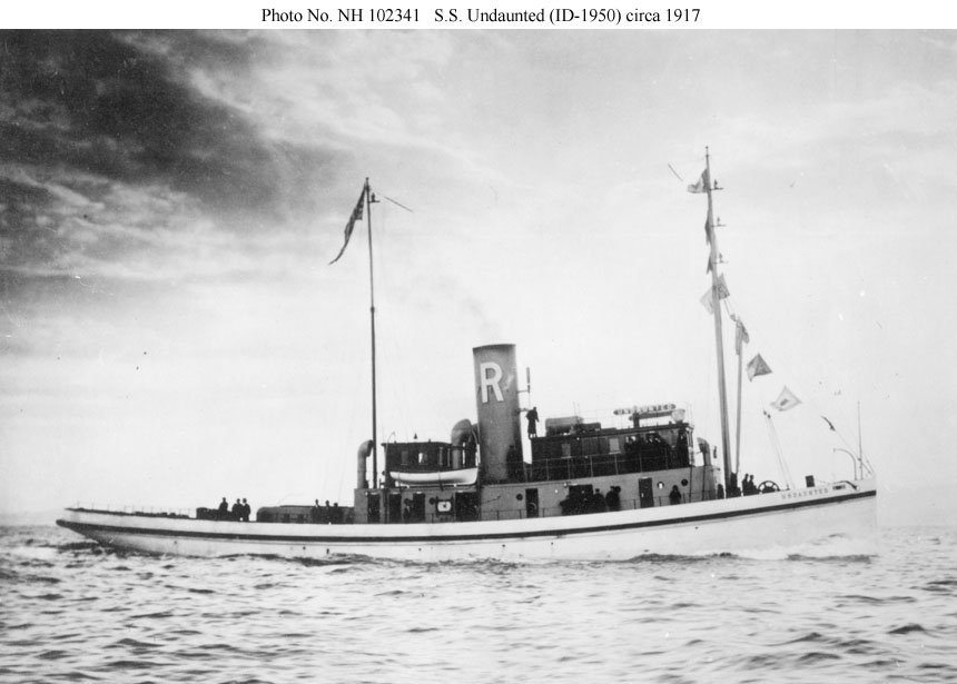 Her smokestack wears the markings of her owner, the Rolph Navigation & Coal Co. of San Francisco. She and her sister Dreadnaught (SP-1951) were acquired by the Navy in early 1918. They were classified respectively AT-58 and YT-34 in 1920.