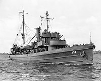 This ship had the enclosed upper bridge also fitted to a few other former sisters that once served in Alaska, such as Teal (AVP-5).