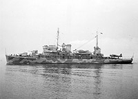 Photographed with a second 40mm quadruple gun mount on the fantail. This mount was added in around 1948 and removed in around 1956.