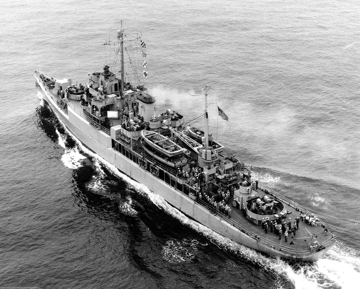 Photographed shortly after recommissioning in 1951, with her original armament of one 5"/38 gun and one 40mm quadruple mount.