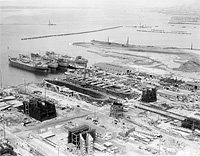 The company's facilities on 9 March 1943, including Building Docks Nos. 1 and 2 and the Outfitting Dock.