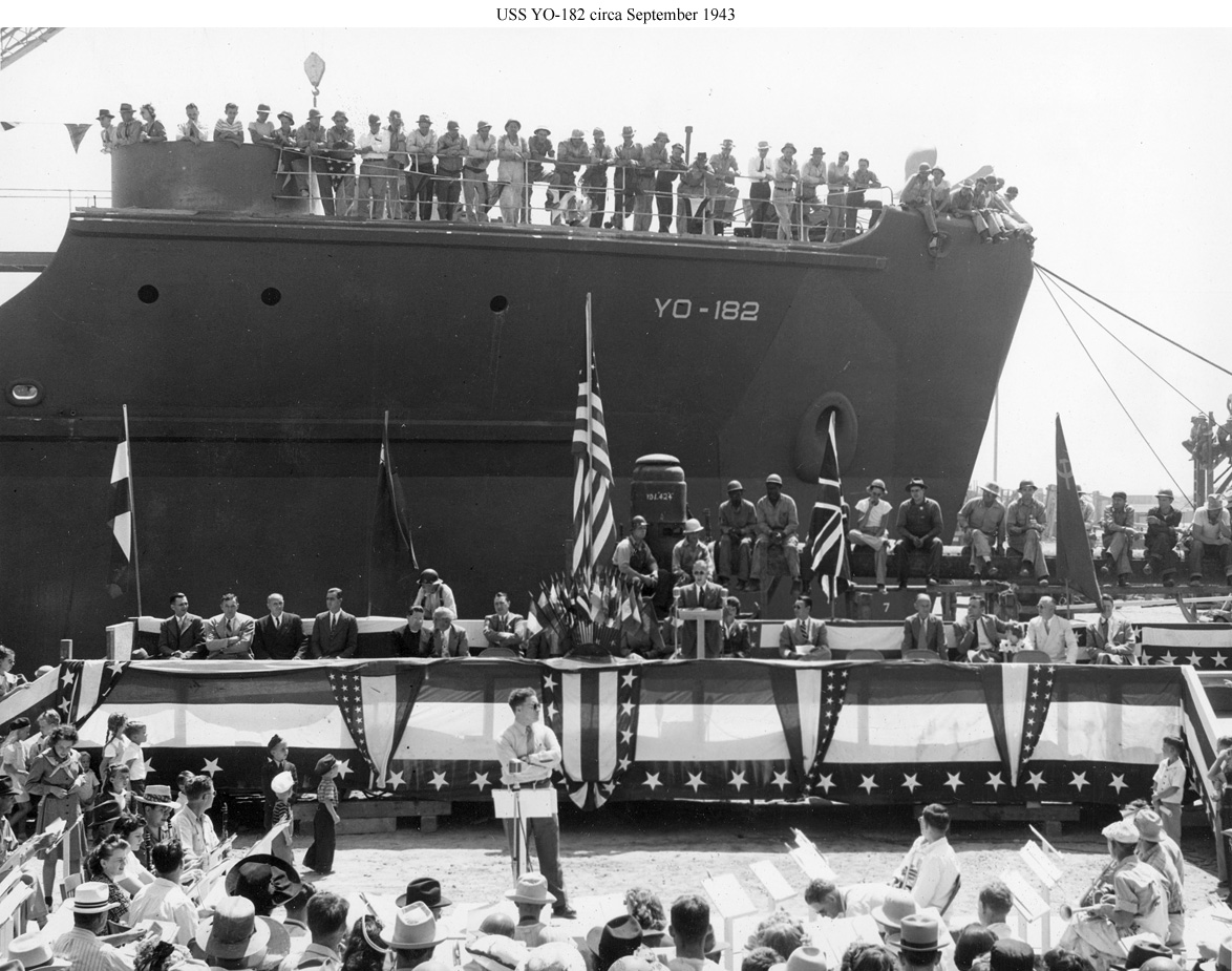 The first concrete barge built for the U.S. government since 1920 and the lead ship of her class, she remained a Maritime Commission vessel until commissioning as USS YOG-85 in August 1943.
