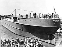 Under tow in San Diego Harbor on 14 June 1943 shortly after completion by her builder, Concrete Ship Constructors.