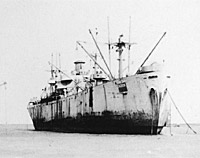Aground at Buckner Bay, Okinawa, after Typhoon Louise ravaged the harbor there on 9 October 1945.