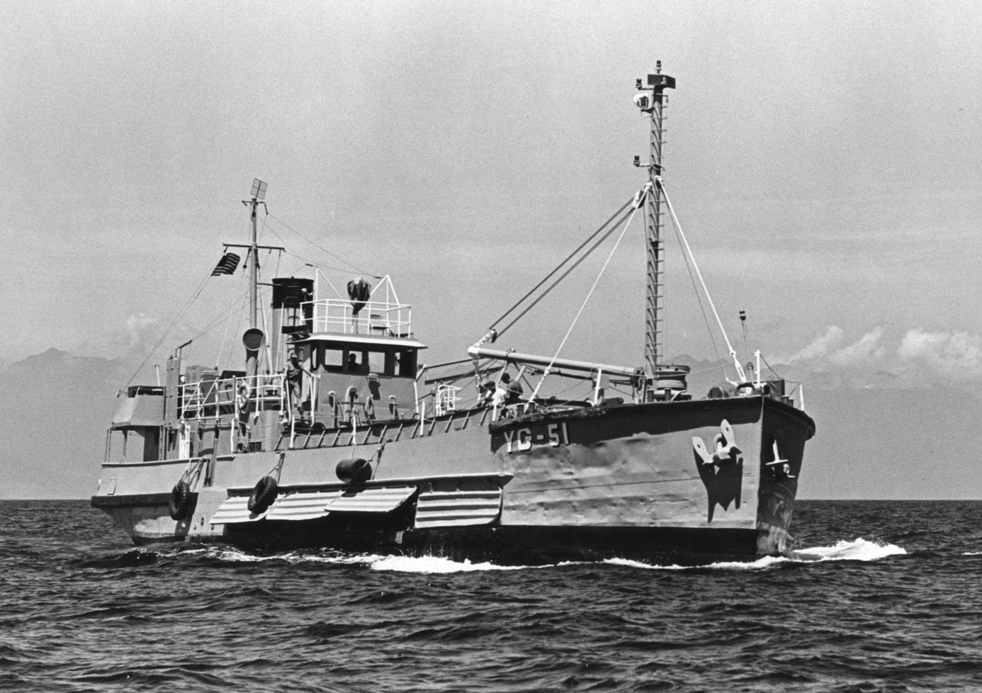 YF-885 became an ammunition lighter at the U.S. Naval Ammunition Depot, Bangor, Wash., in 1950 and was transferred on 4 April 1960 to the Naval Torpedo Station at Keyport and designated an Underwater Weapons Recovery Craft. In this photo, backstamped at Keyport on 9 September 1964, a torpedo and a torpedo launch tube are visible at the after end of the superstructure. On 8 June 1965 she was named Keyport.