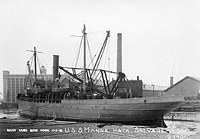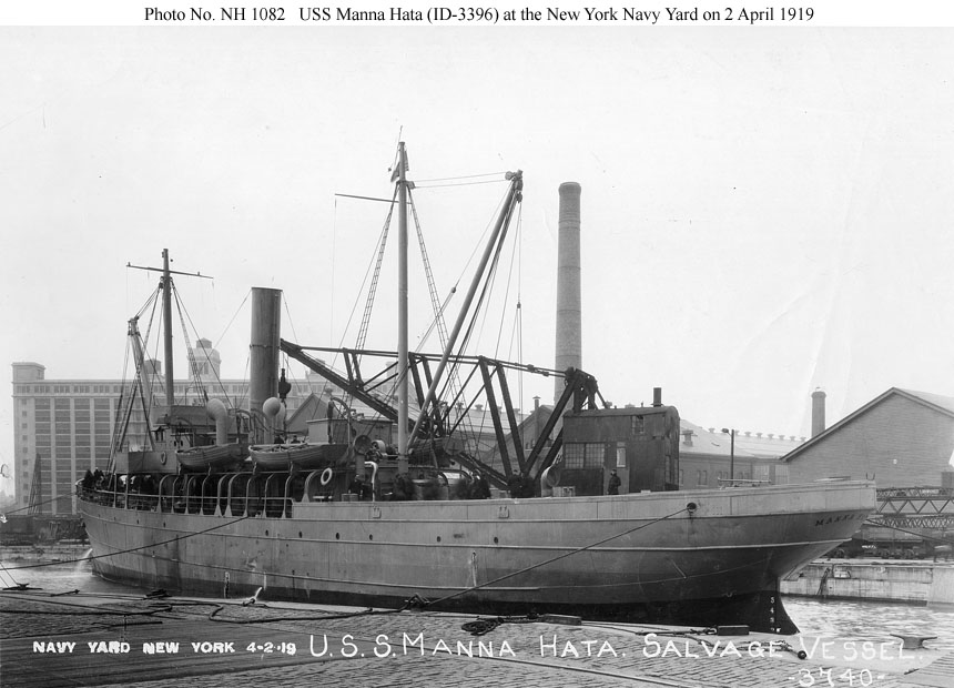 USS Manna Hata, a 1103 gross ton steam freighter built in 1900 by Harlan & Hollingsworth, Wilmington, Del., operated along the Atlantic coast between Baltimore and New York. She was commandeered by the Navy from the New York & Baltimore Transportation Co. on 7 September 1918, converted to a salvage ship, and commissioned on 22 March 1919.