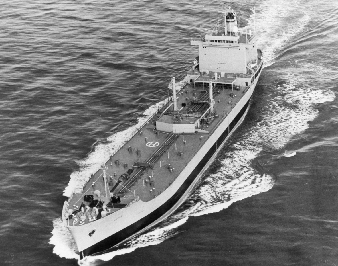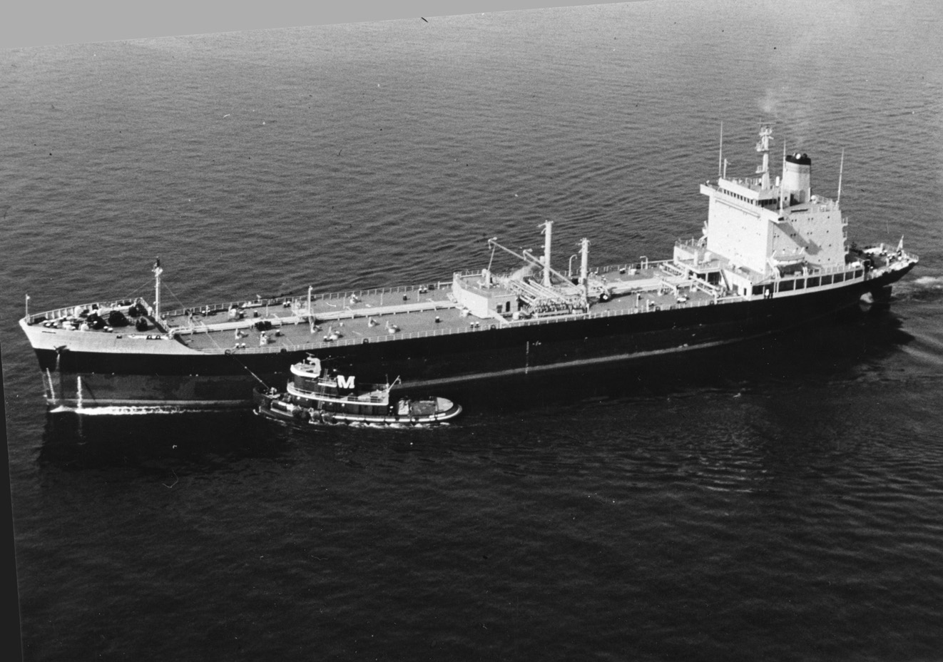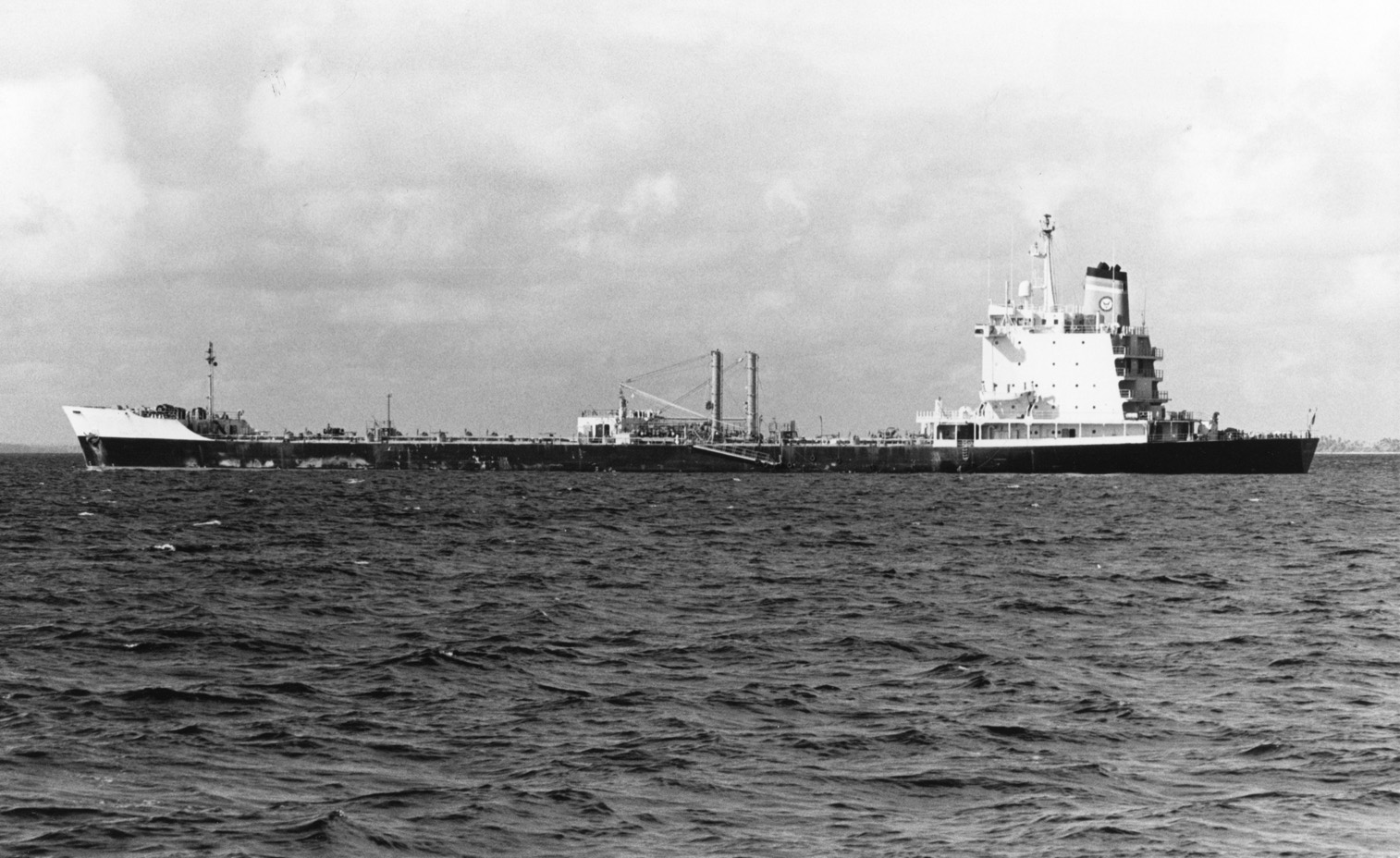 Photographed circa 1976 with a black upper hull, gray upperworks, and a gray stack without the MSC seal, which was carried by most MSC ships between 1973 and 1985. The elimination of the midships deckhouse in tankers during the 1960s led to towering after deckhouses as seen here and in the AO 177 class.